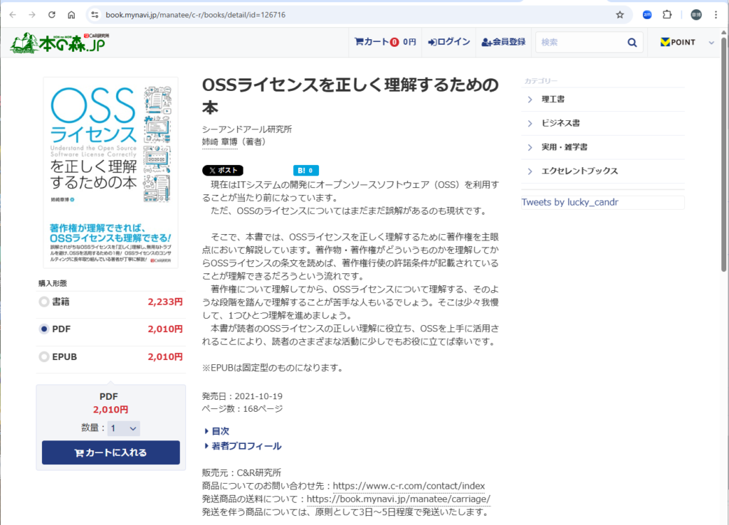 ソースとするのは拙著のPDF版を使います。他の形式が読み込めるかは未確認です。拙著のPDF版は、C&R研究所サイトからもリンクがある本の森.JPから購入できます。紙の書籍より一割ほど安くなっています。